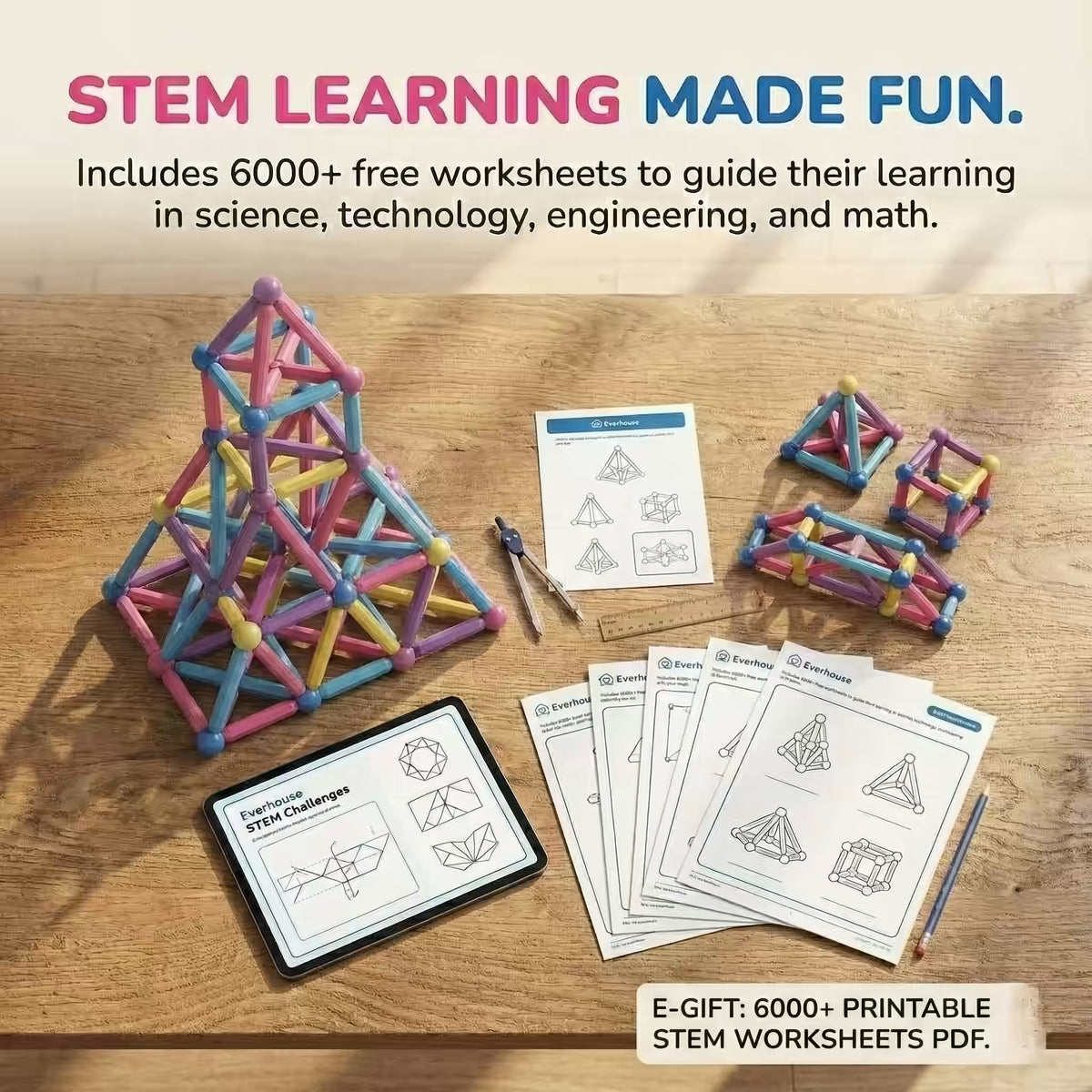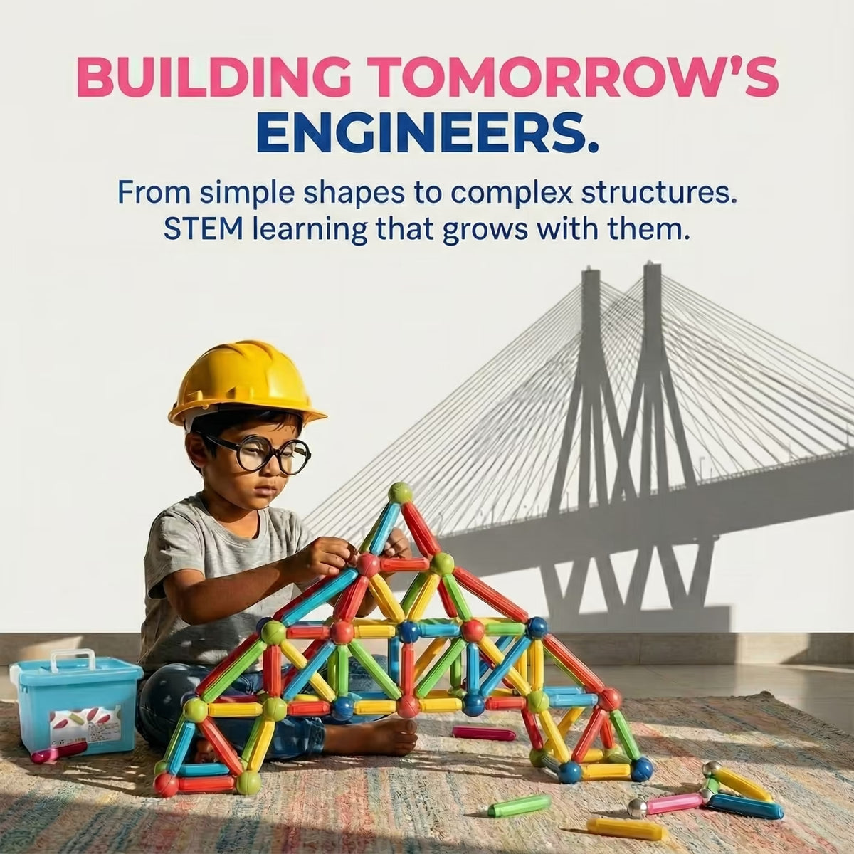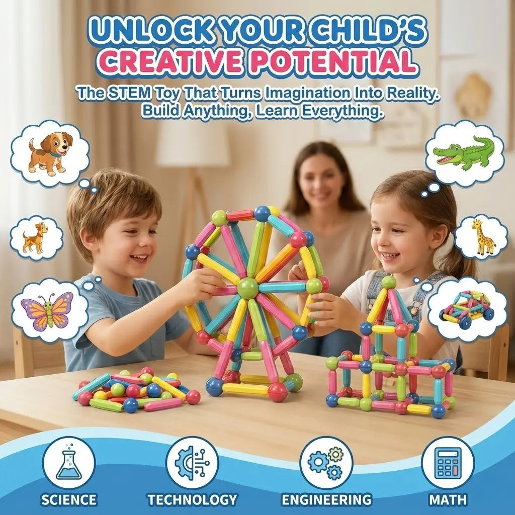 Each kit comes with 46 Magnetic Pieces (Balls & Sticks) to build various structures, a creative guidebook with design ideas, and a handy storage bag for easy cleanup.