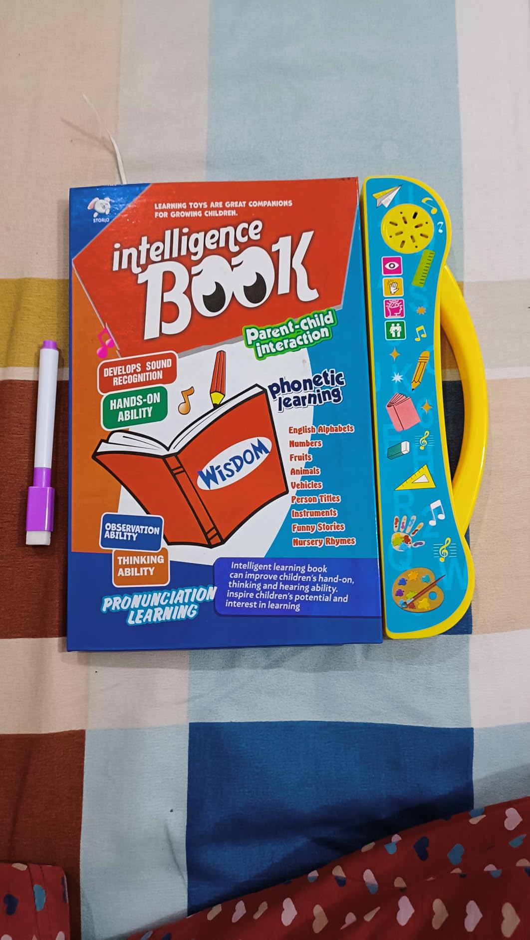 - Interactive Audio: The book is interactive, using interactive pages that play sounds, words, and phonetic pronunciations when a child presses on them.