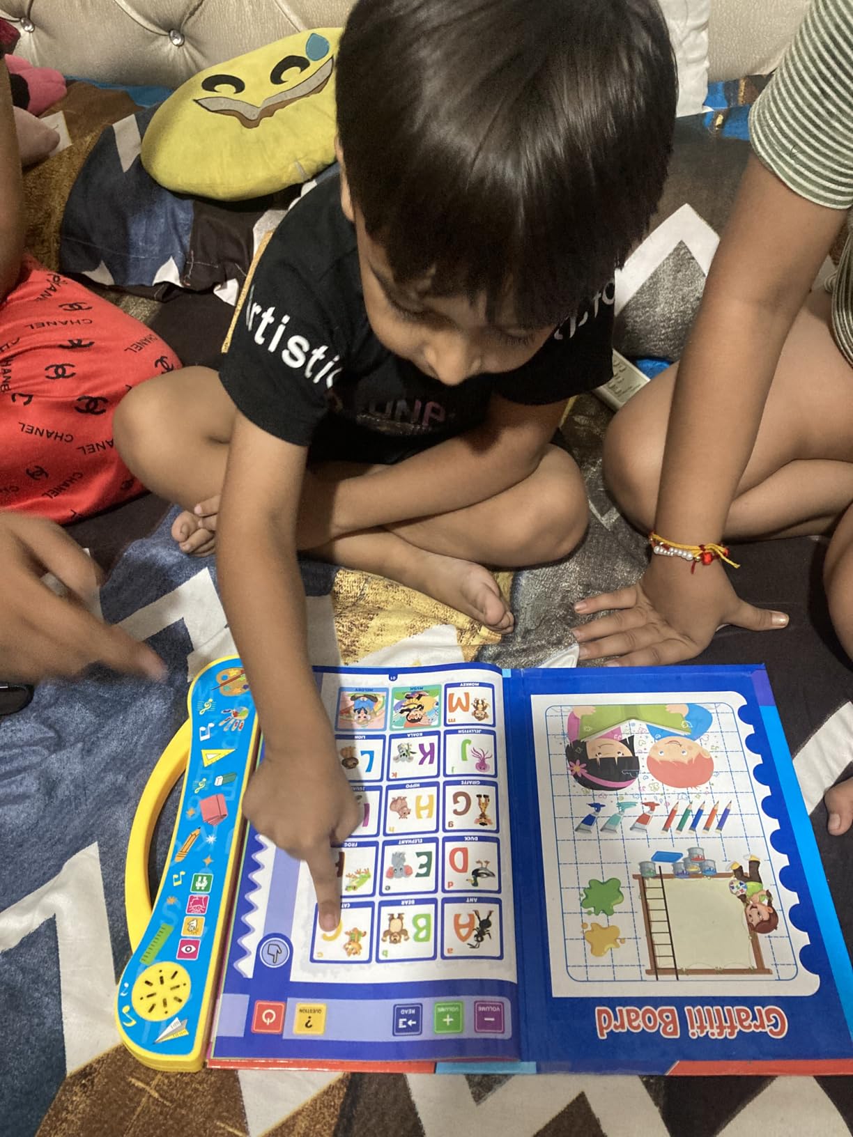 It's an interactive, audio-based learning pad designed for young children. It uses touch-activated technology to teach fundamental concepts like the alphabet, numbers, and animals in a fun, engaging, and screen-free way.